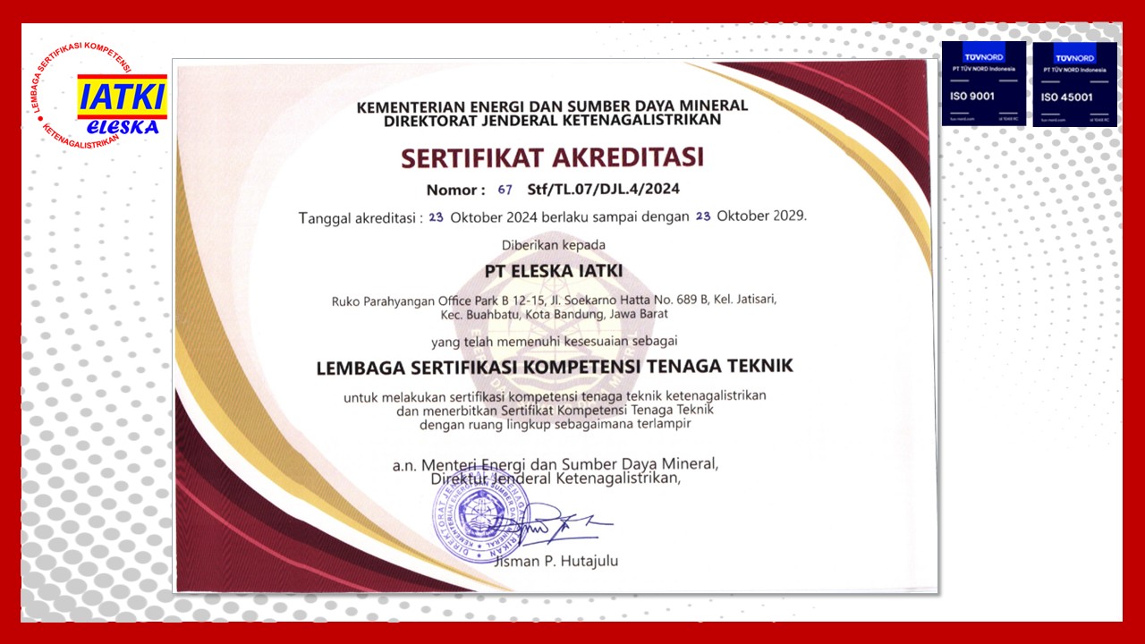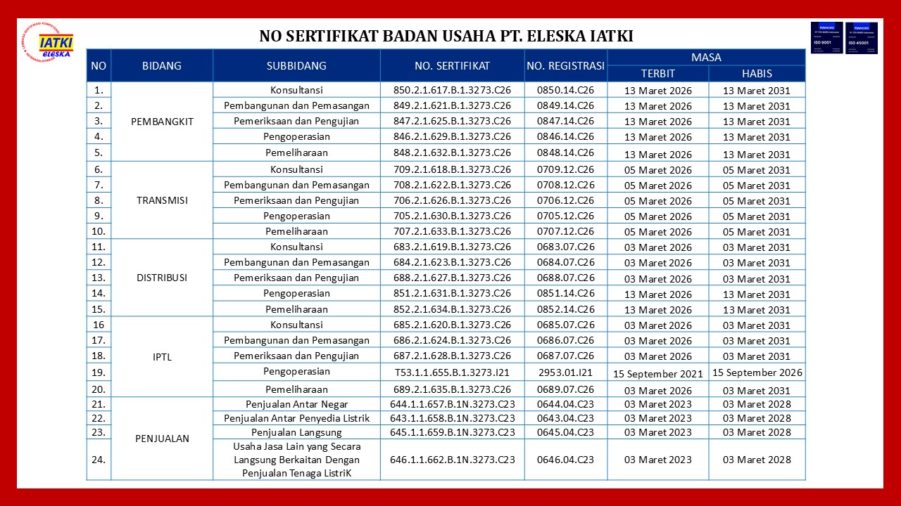 Dalam penyesuaian Lembaga Sertifikasi IATKI menjadi suatu Badan Usaha berbadan hukum, dibentuklah PT. ELESKA IATKI sesuai dengan Akta Notaris No. 06 tahun 2013 dan Keputusan Menteri Hukum dan Hak Asasi Manusia Republik Indonesia No. AHU-62.01.01 tahun 2013 tentang Pengesahan Badan Hukum Perseroan.